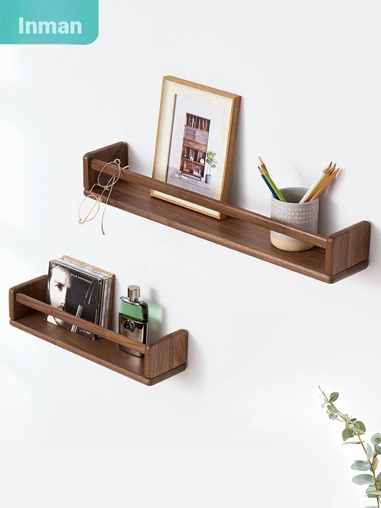 Inman Wall-Mounted Wooden Storage Shelf - Stylish Solid Wood Magazine Rack for Living Room, Walnut Finish, Perfect for Organizing Books and Newspapers, Space-Saving Design