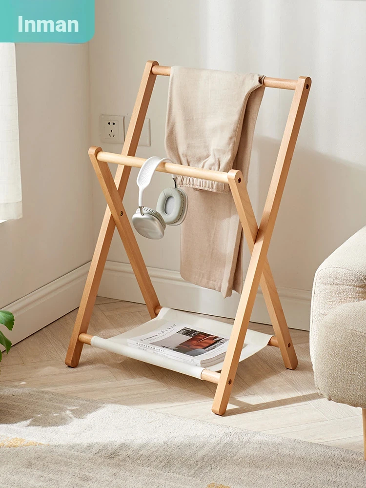 Solid Wood Bedside Clothes Rack - Stylish Nordic Floor Hanging Organizer for Bedroom - Perfect Temporary Clothing Storage Solution - Compact Design for Easy Placement